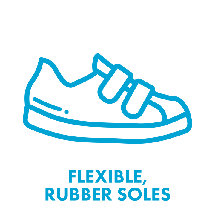 - Anti-slip, soft, flexible rubber soles