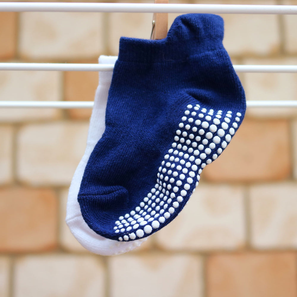 Practical socks for first walker boys, in a convenient navy and white 2-pack.