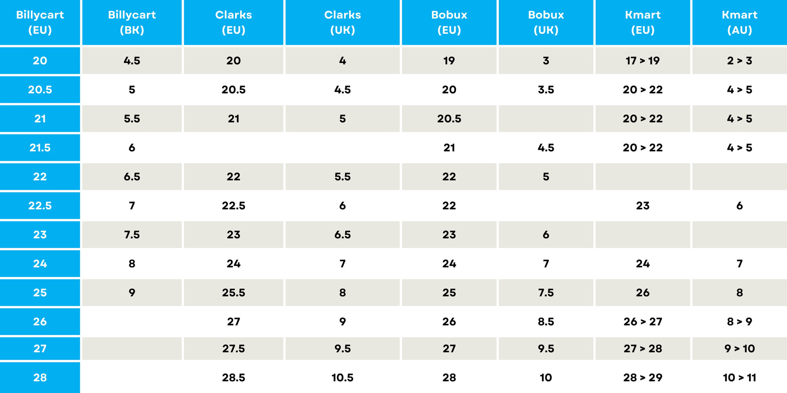 Most Australian children's shoe brands have slightly different sizing. Some brands can measure up to 1.5 sizes bigger. It's important to measure every time you purchase new shoes to ensure the correct fit the first time.