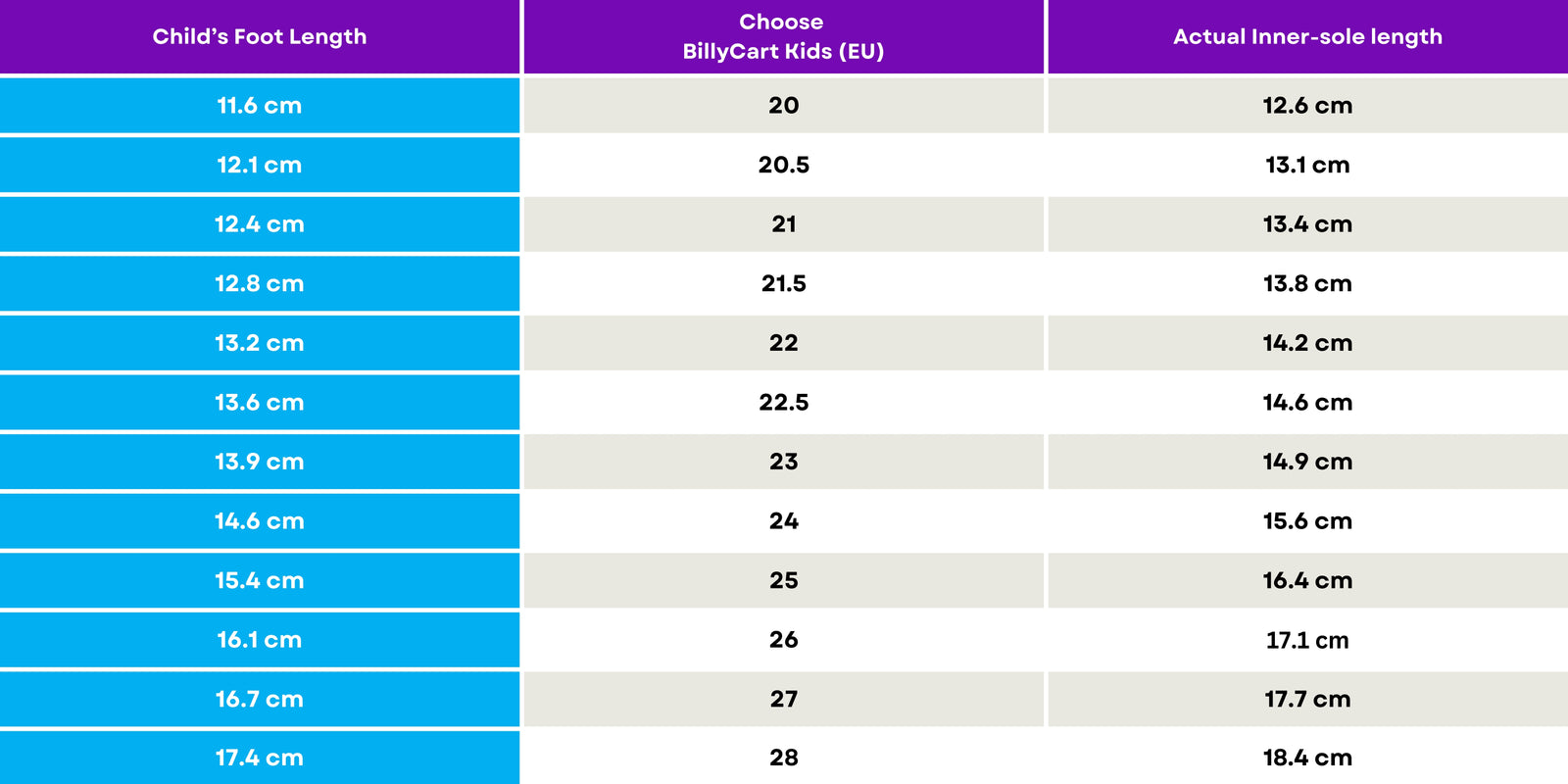 IMPORTANT SIZING TIPS: Sizing recommendations in the chart below INCLUDE approximately 1cm growth room allowance. We DO NOT recommend returning customers automatically purchase the next size up. It is very common for children to skip sizes and we strongly encourage parents to remeasure before every purchase.